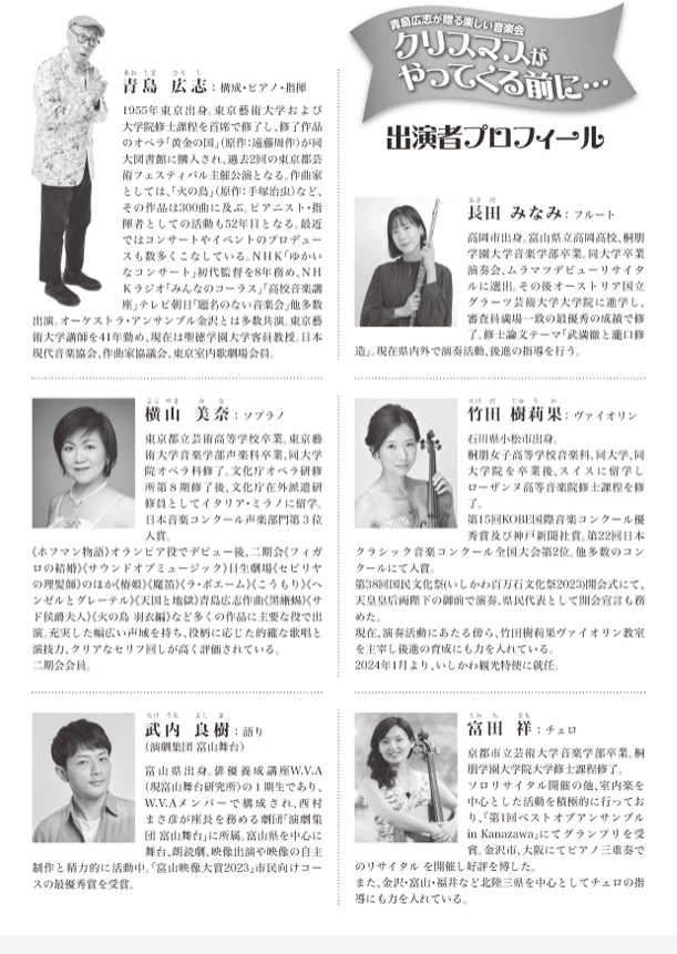 | イベント名 | 青島広志が贈る楽しい音楽会~クリスマスがやってくる前に・・・~ |