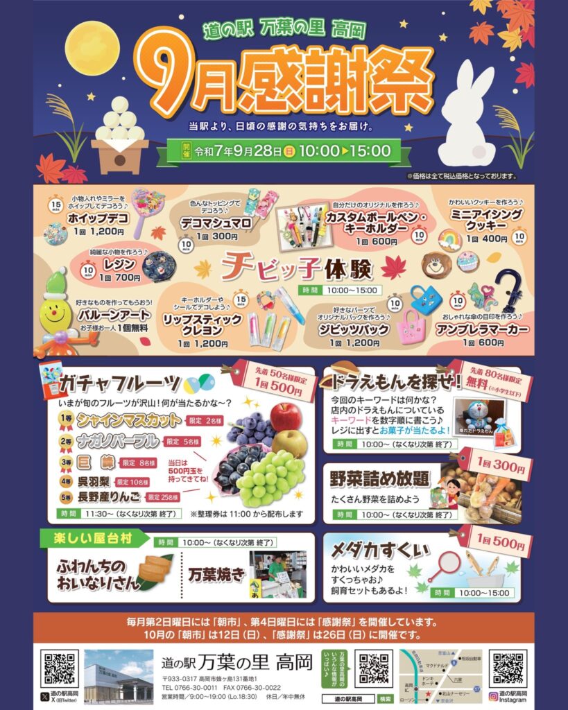 道の駅万葉の里 高岡 9月感謝祭 9/28(日)