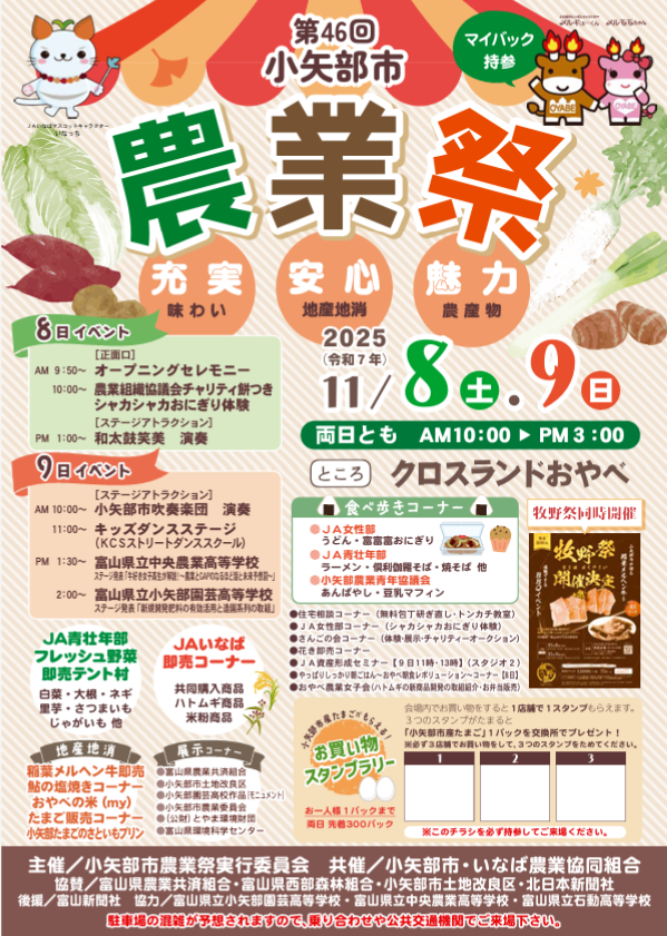 第46回小矢部市農業祭 11/8(土)、11/9(日)