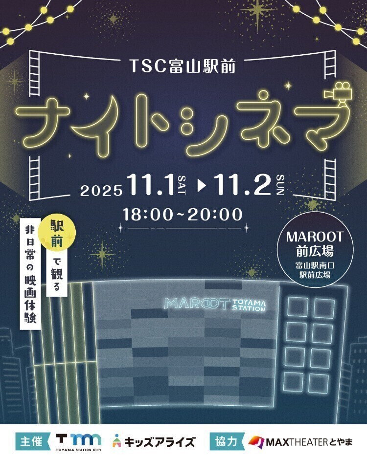 駅前で観る非日常の映画体験 「TSC富山駅前ナイトシネマ」今年も開催! 11月1日(...