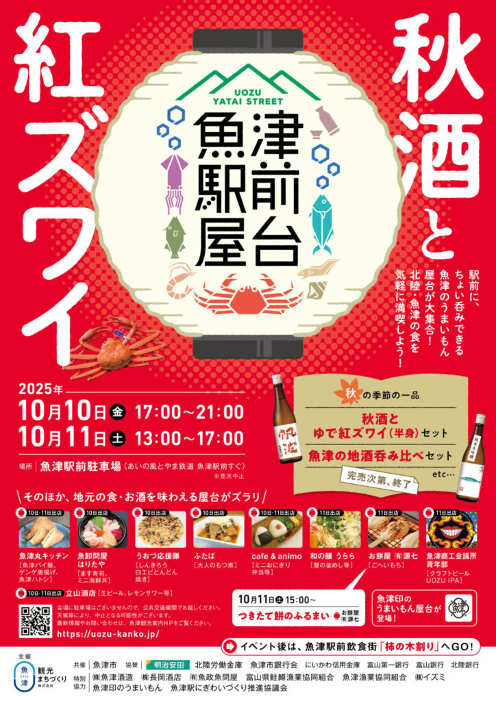 魚津駅前屋台「秋酒と紅ズワイ」 10/10(金)、10/11(土)